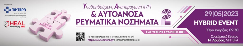 Σεμινάριο: Υποβοηθούμενη Αναπαραγωγή (IVF) & Αυτοάνοσα Ρευματικά Νοσήματα 2, Υβριδική διεξαγωγή, 29/5/2023